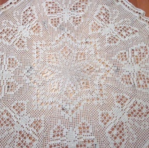 Stor heklet duk i naturfarge- ca. 110 cm.