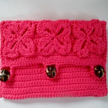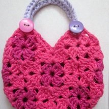 Ryddesalg, før kr 200,-, nå kr 150,- Liten heklet veske, i rosa og lilla.