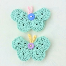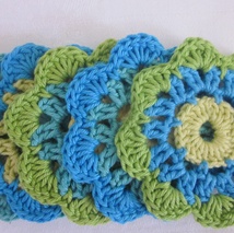 SALG -1 Sett med 4 hekla blomster, i blått, turkis og lys grønn.