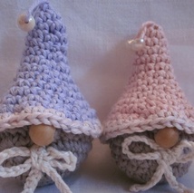 SALG -1 sett med to hekla nisser, m/ lys lilla og rosa nisseluer. Før kr. 175,-