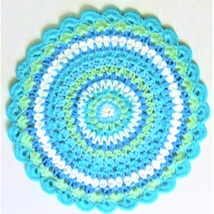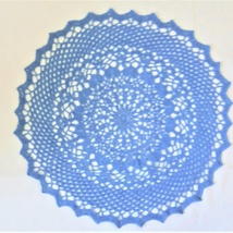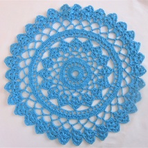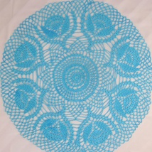 SALG -Heklet duk i turkis - diameter 56 cm.