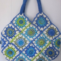 SALG -Heklet veske i eplegrønn, turkis, himmelblå, kornblå og natur.
