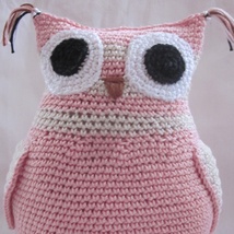 *SALG* Heklet ugle i rosa og naturfarge. FØR KR 300,-