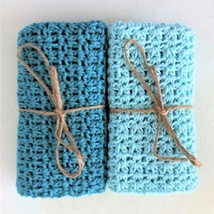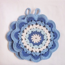 *SALG* 2 Stk. Grytekluter, doble, i lyseblått, mellomblå, himmelblå, naturfarge. FØR KR. 250,-
