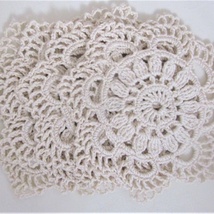 SALG -1 Sett med 5 hvite , hekla tallerkendempere.