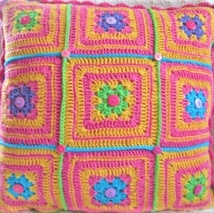 SALG - Heklet putetrekk i blå/grønn, lilla, turkis, rosa, gressgrønn.