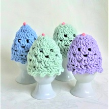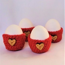 JANUARSALG- 1 Sett m/4 hekla eggvarmere i lys blå, lys lilla, rosa og pastellgrønn
