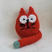 2 stk. hekla grytekluter i rødt, beige og gult.