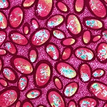 Bomullstoff/quiltestoff i rosa, m/mønster i gult, gul/orange og orange.