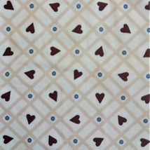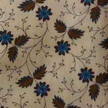 Bomullstoff/quiltestoff i beige, m/ blomstermønster i mørk brun.