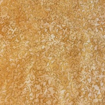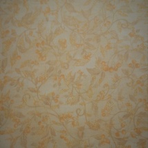Bomullstoff/quiltestoff i brunt, m/okergult bladmønster.