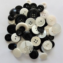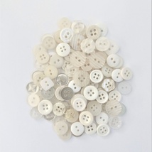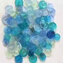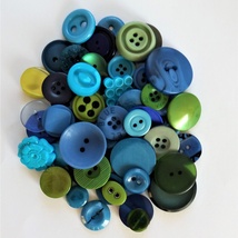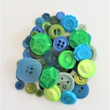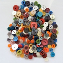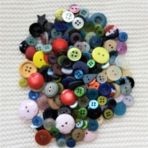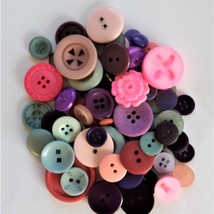 Knappemix- plastknapper i rosa, lilla og grågrønn.