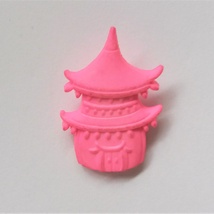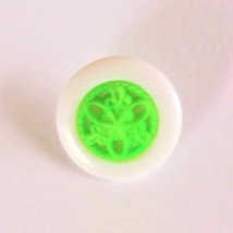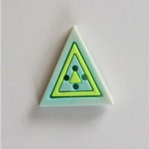 Trekantet plastknapp, i lyseblå, neongrønn.