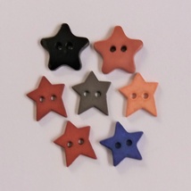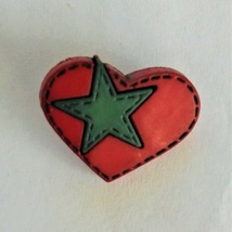 Rød hjerteknapp i plast, m/grønn stjerne.