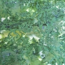 Bomullstoff/quiltestoff m/bladmønster på melert bunn, i grønt, lilla, brunt.