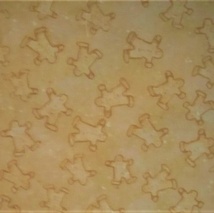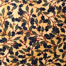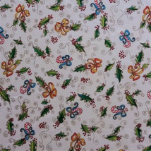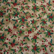 Bomullstoff/quiltestoff m/ kristtorn på lys brun, melert bunn.
