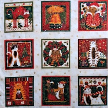 Panelstoff m/julemotiv, katter, på lys bunn.