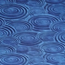 Bomullstoff/quiltestoff i blått, m/sirkelmønster/"ringer i vann".