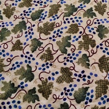 Bomullstoff/quiltestoff m/ blå og blå/lilla drueklaser, blader og stilker.