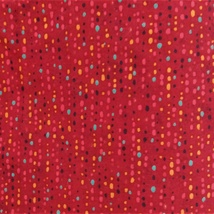 Bomullstoff/quiltestoff i rødt m/ prikker i div. farger.