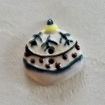 Figurknapp i keramikk - julebjelle m/kristtorn og bær.