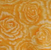 Bomullstoff/quiltestoff m/rosemønster i orange/lys gul, gul/orange.
