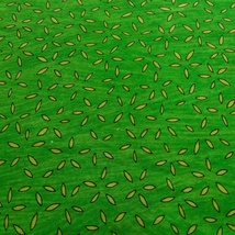 Bomullstoff/quiltestoff , melert, i fargen grønn, m/gult blad mønster.