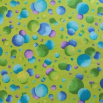 Bomullstoff/quiltestoff, m/leker, på grønn, melert bunn.