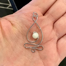 Unikt anheng: ekte månestein halvedelsten, sølv belagt wire / tråd. FRI FRAKT
