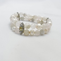 Fire-raders armbånd - hvit versjon: bergkrystall, ferskvannsperler, organza sløyfe. FRI FRAKT