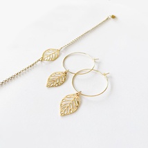 Ørepynt: øreringer / kreoler med blad form sjarm i gylden farge. FRI FRAKT