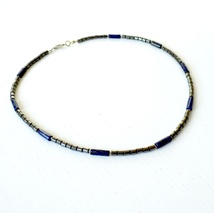 NY! Svart & blå mineral halskjede for menn, med lapis lazuli og hematitt, maskuline halssmykke, FRI FRAKT