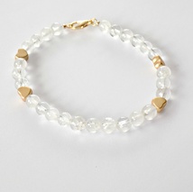 RESERVERT! Armbånd med naturlig klar bergkrystall, gull farge hjerteform mellomperler. FRI FRAKT