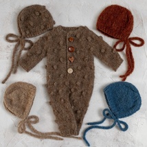 Håndstrikket heldress og 4 luer til nyfødtfotografering