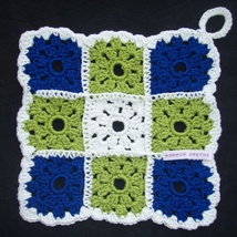 *ryddesalg* Mormors grytekluter, blå/hvit/grønn