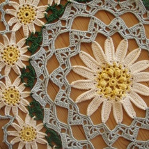 Heklet brikke, prestekrage (ryddesalg, halvpris)