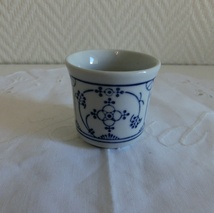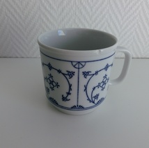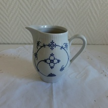 Blå og hvit fløtemugge