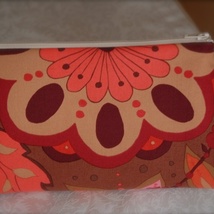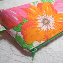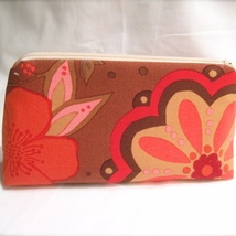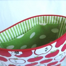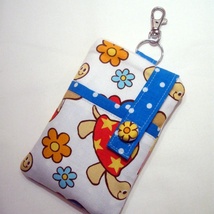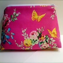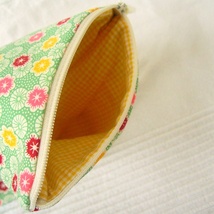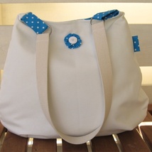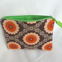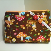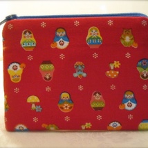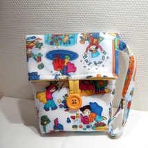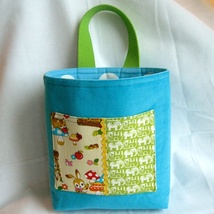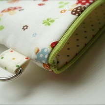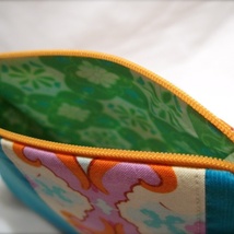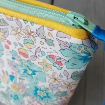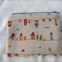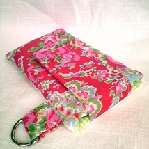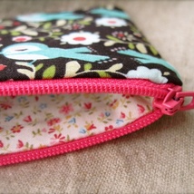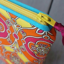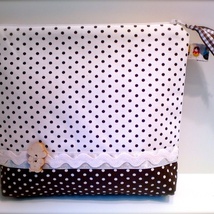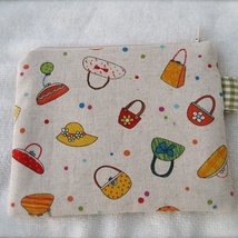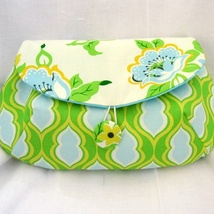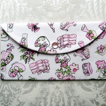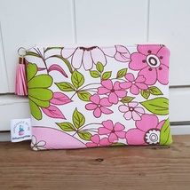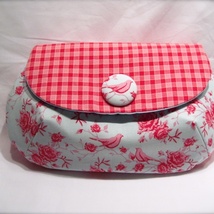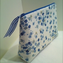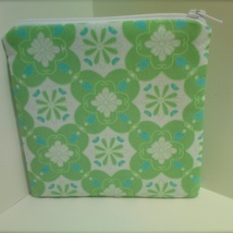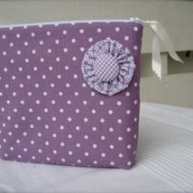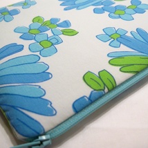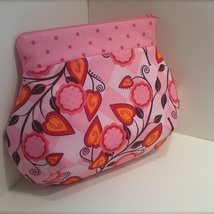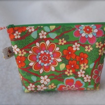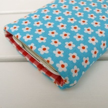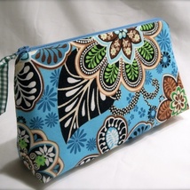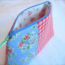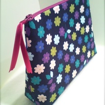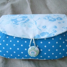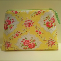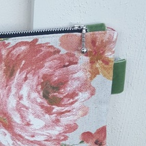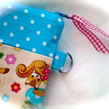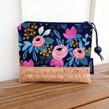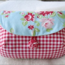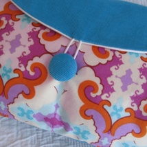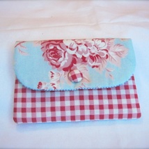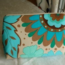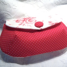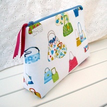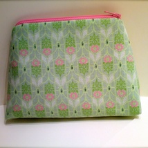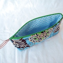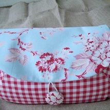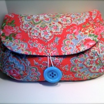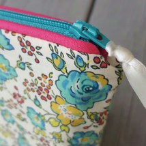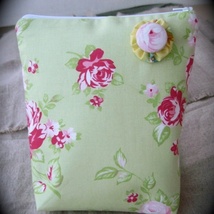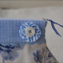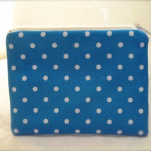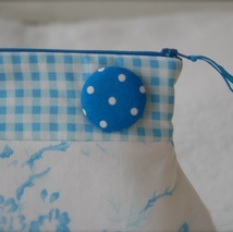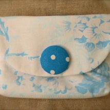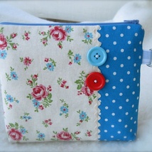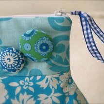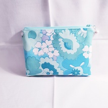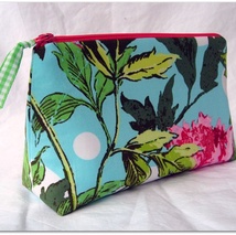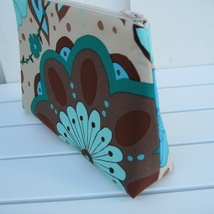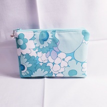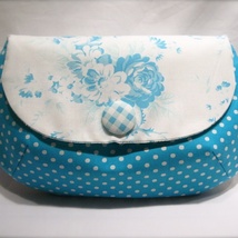 Veske eller stor pung med glidelås - turkis med roser og prikker