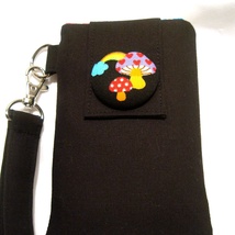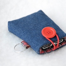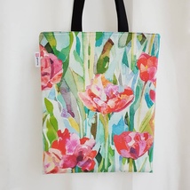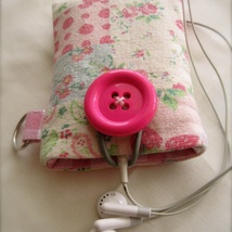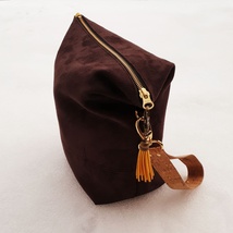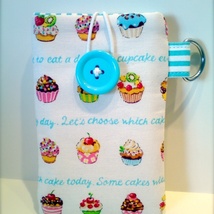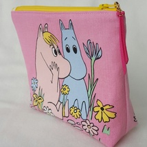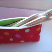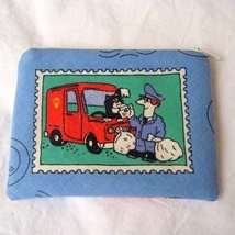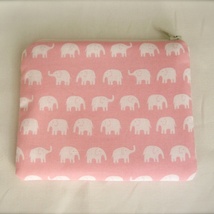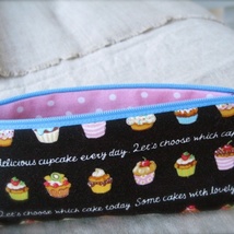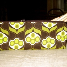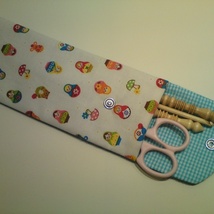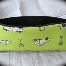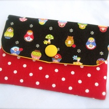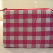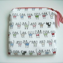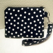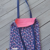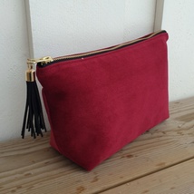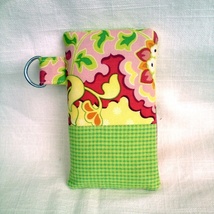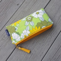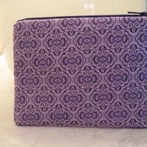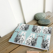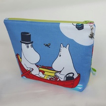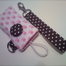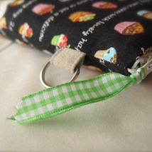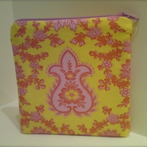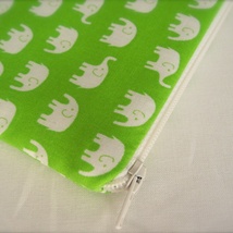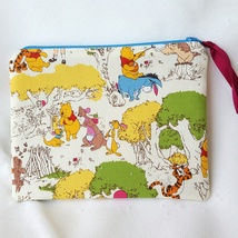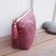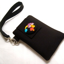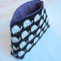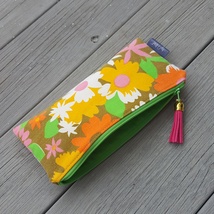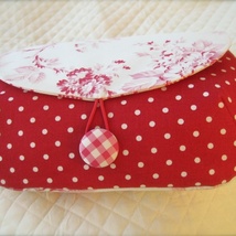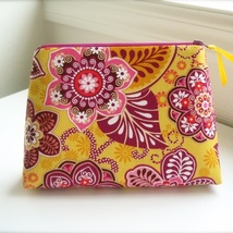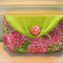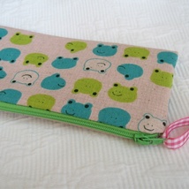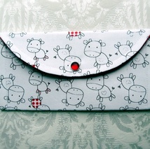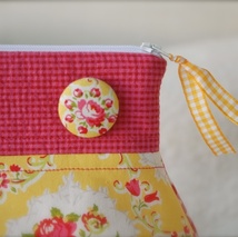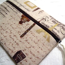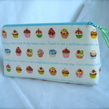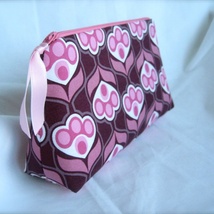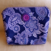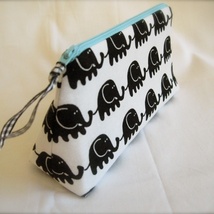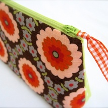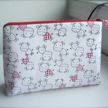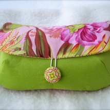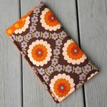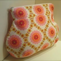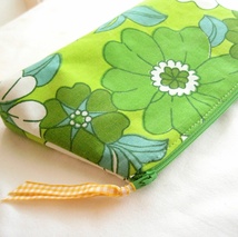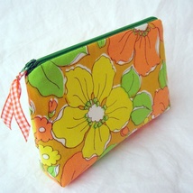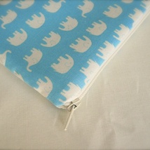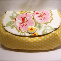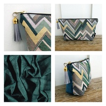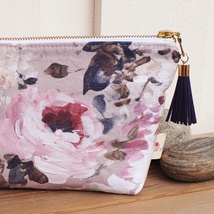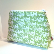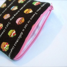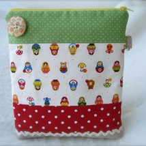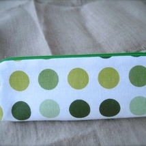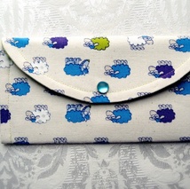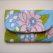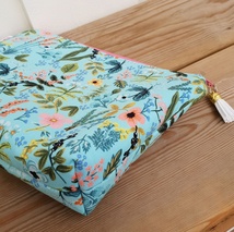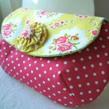 Veske eller stor pung med glidelås - turkis med roser og prikker