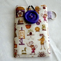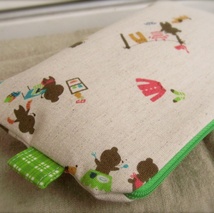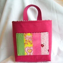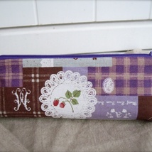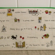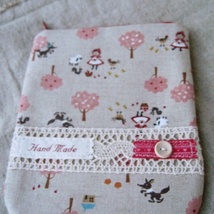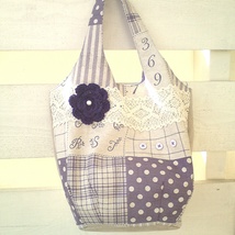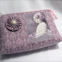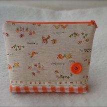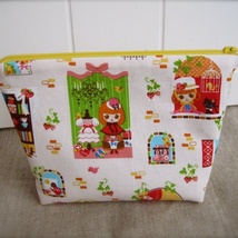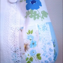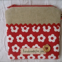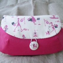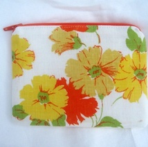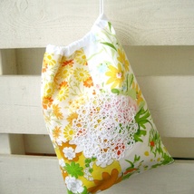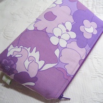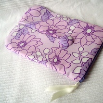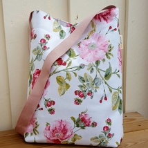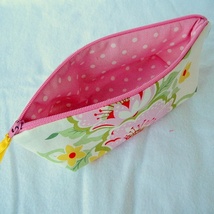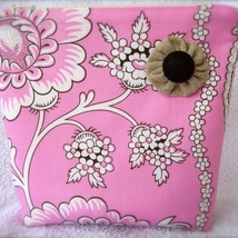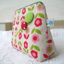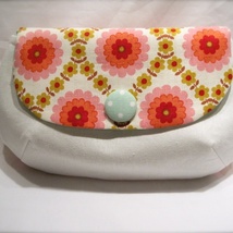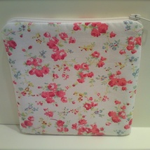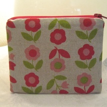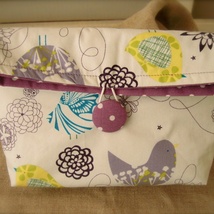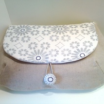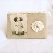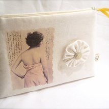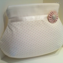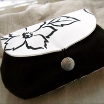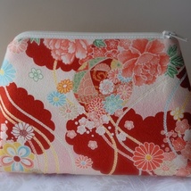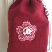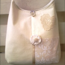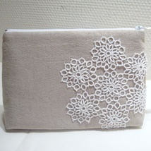 Liten veske - hvit lin og japansk bomull med kirsebærblomster