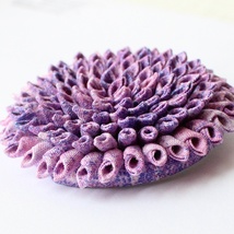 Håndlaget lilla brosje av tekstil