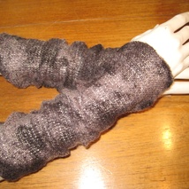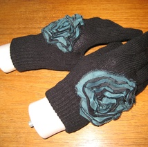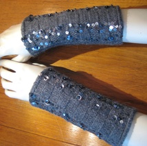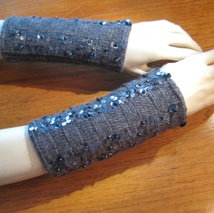 Antrasittgrå pulsvarmer med perler og paljetter.