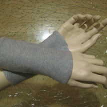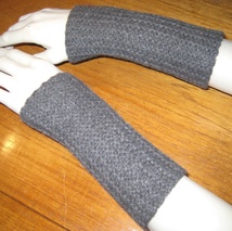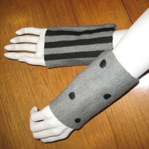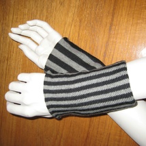 Grå pulsvarmere med sorte striper.