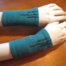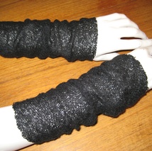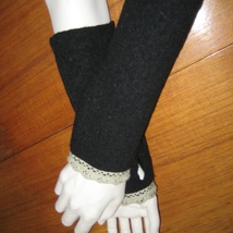 Pulsvarmere i ullfilt med blondekant.