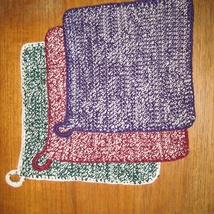 Lilla-, vinrød- og flaskegrønnmelerte grytekluter. 3 stk.