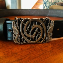 Belte i ekte skinn med viking design spenne, håndlaget.