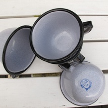 5 grå vintage emalje kopper