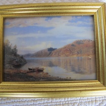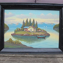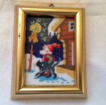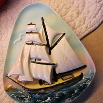 Lite fat med håndmalt seilskute i relieff