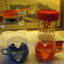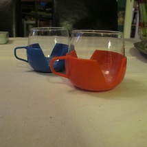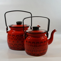 To retro kopper i blått og rødt
