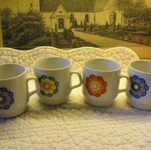 Fire vintage krus med hippieblomster